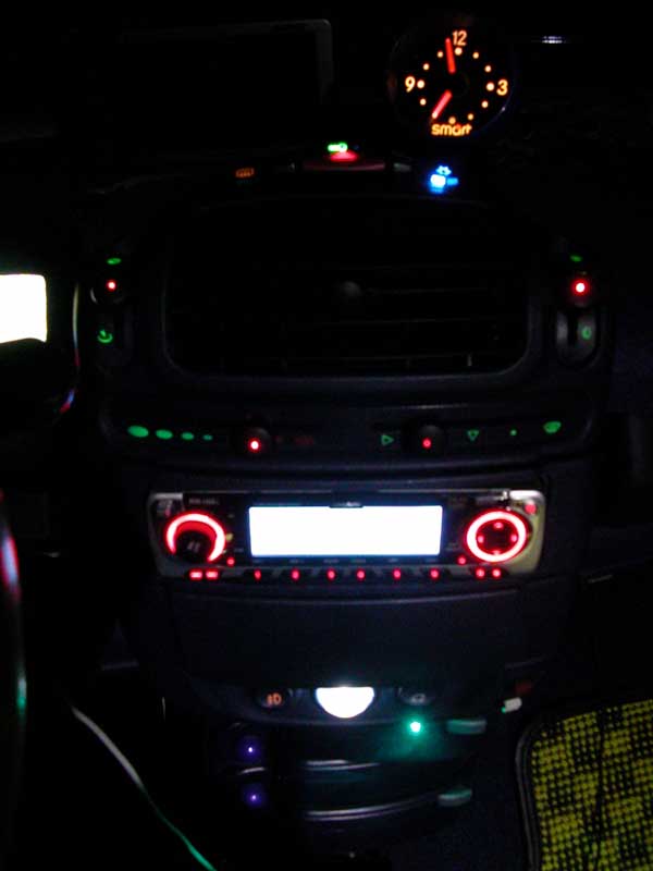 でやってみた結果がこれです。先日いじった透過照明の緑と赤点とのコントラストもなかなかのもので(ちょっとケバい?笑),ようやく,夜でもポジションが分かりやすい空調ノブになりました。